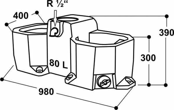 Caractéristiques : - Avec deux cuves - Avec flotteur haute performance intégré - Raccord : R ½'' au dos de l'abreuvoir par le haut ou par le bas - Avec quatre trous de fixation pour fixation au sol ou sur un socle