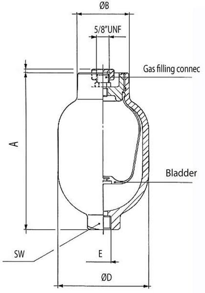 Cet accumulateur utilise un soufflet en caoutchouc comme cloison entre le gaz et le liquide. Cet accumulateur est livré pré-chargé. Kramp est en mesure de fournir l'accumulateur à la précharge souhaitée. Les précharges suivantes peuvent être utilisées à titre indicatif : éviter le broutage des tuyaux avec une précharge de 95% de la pression de service et, en tant que réservoir d'énergie, une précharge de 90% de la pression de service doit être maintenue.