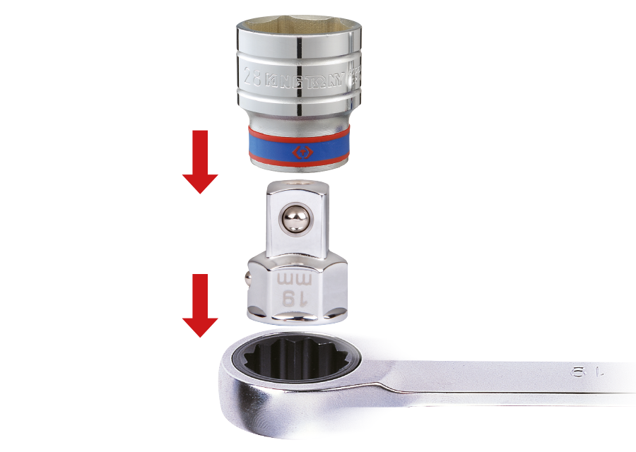 Adaptateur douilles 1/2" sur clé mixte à cliquet 19mm
