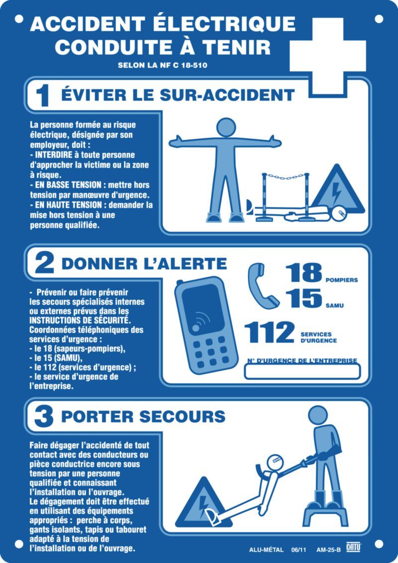 Affiches plastique accident électrique conduite à tenir 'soins aux électrisés' (par 1)