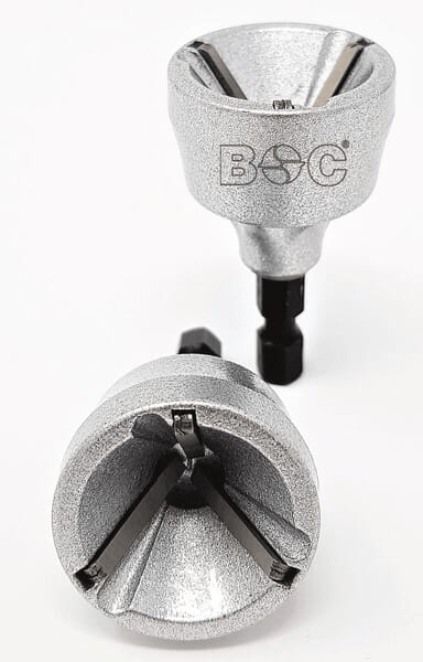 Points forts : - Les embouts en carbure assurent un ébarbage externe rapide et propre. - Pour utilisation avec des machines sans fil et avec fil - Simple d’utilisation - Fonctionnement rapide et sûr - Côtés de coupe couverts - Enlèvement sûr des copeaux