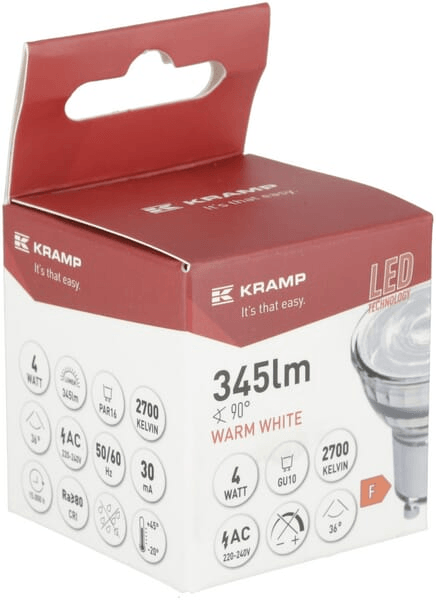 Ces ampoules LED modernes durent jusqu'à 10 ans et consomment jusqu'à 80 % de moins que les ampoules traditionnelles. Vous bénéficiez à la fois d’une consommation économe en énergie et d’une durée de vie extrêmement longue. Les ampoules ont une douille GU10 et ont une température de couleur blanc chaud de 2700K.