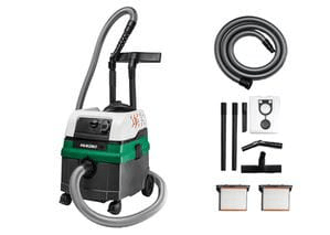 Détails du produit : - Prise avec fonction marche/arrêt automatique - Nettoyage du filtre pendant les pauses de travail pour maintenir à tout moment une puissance d'aspiration élevée - Roues arrière grandes et robustes - Avec un tuyau de 3,2m (Ø 35mm) - Cordon d'alimentation 8 mètres