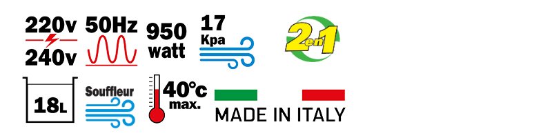 • Moteur 230 V~50 Hz -950 W - Dépression : 17 Kpa