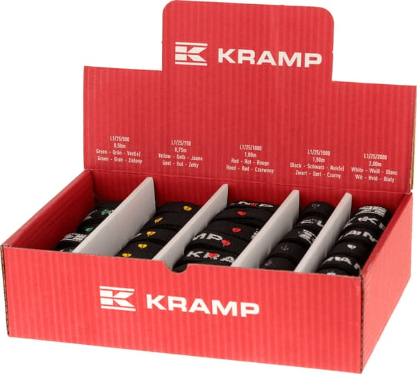 Extra info : Assortiment de sangles Kramp 12 pièces - 0,50m 12 pièces - 0,75m 12 pièces - 1,00m 6 pièces - 1,50m 6 pièces - 2,00m Total 48 pièces