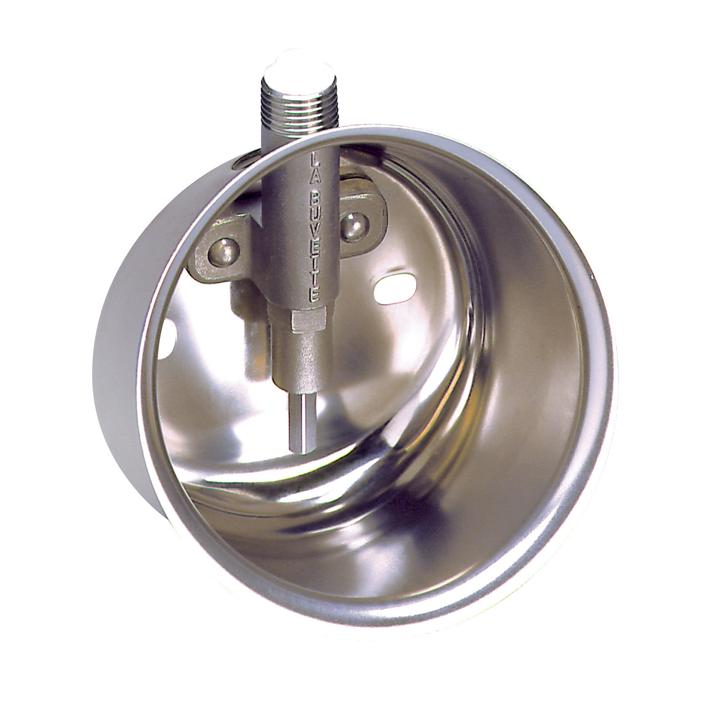 Bol en inox pour post-sevrage. Robinetterie tout inox 15x21, débit réglable. Bol en inox embouti, poli, indéformable. 2 trous de fixation oblongs permettent de corriger un mauvais perçage au mur. Carton de 10.