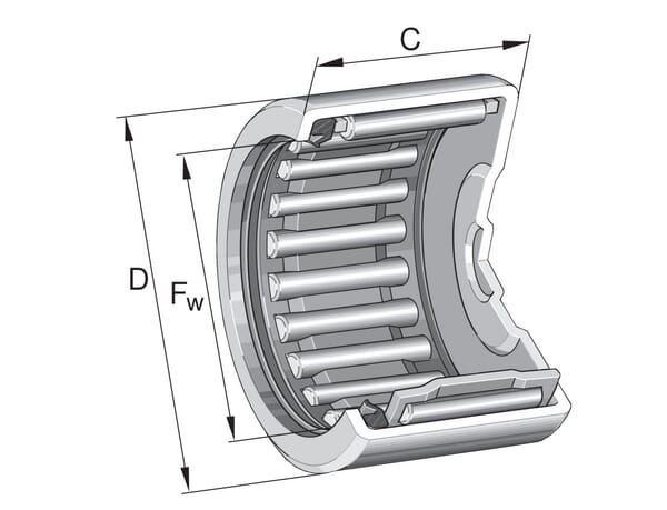 Détails du produit : Douille à aiguilles fermée unilatérale - Convient uniquement aux charges radiales - Le roulement nécessite des surfaces durcies et d'appui au sol