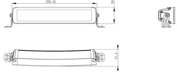 Barre lumineuse de travail LED, 120W, 10080lm, rectangulaire, 12/24V, blanc/orange, 358,4x70x78,6mm prise Deutsch, Combo, courb