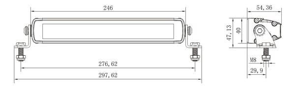 Barre lumineuse de travail LED, 45W, 3780lm, rectangulaire, 12/24V, blanc/orange, 246x40x54mm prise Deutsch, Combo, droite, 9LE