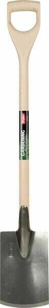 Informations techniques : Bêche de jardin d'acier de haute teneur avec manche en frêne ·Pour bêcher la terre, planter, travaux de terrassement généraux,… ·Lame extra trempée ·Tranchant affuté ·Manche D ·Finissage Lame: polie