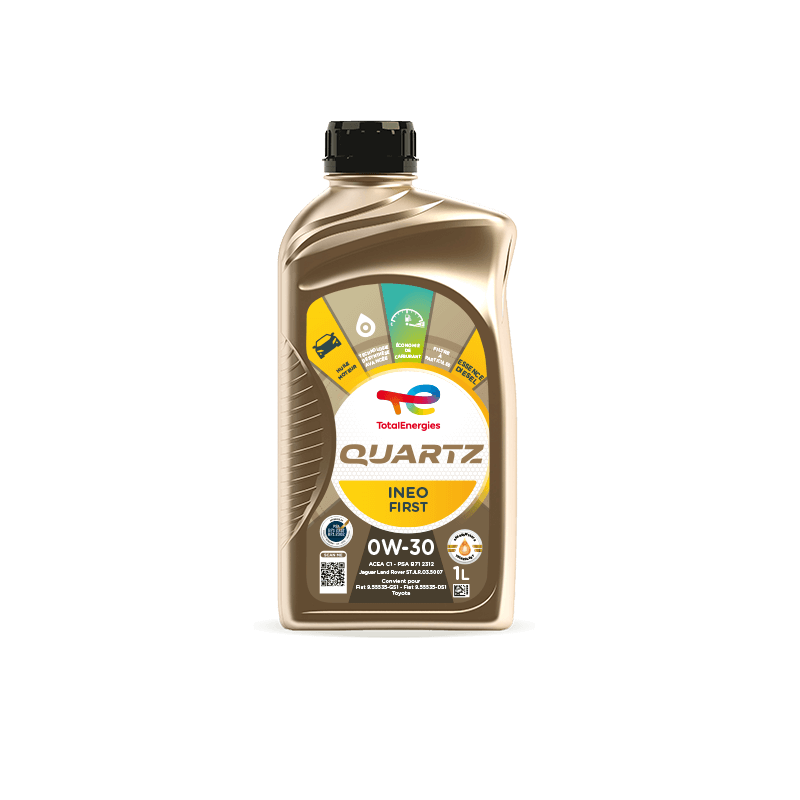 TotalEnergies Quartz Ineo First 0W-30 est utilisée par PSA PEUGEOT CITROËN en première monte et est recommandée par PEUGEOT, CITROËN et DS en après-vente. Ce produit est une huile moteur de technologie de synthèse anti-pollution qui offre la meilleure protection moteur contre les phénomènes d’usure et d’encrassement.