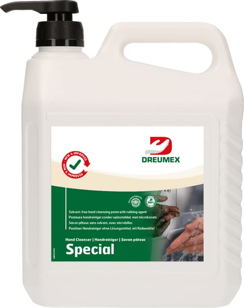 Particularités : - Appliquer DREUMEX SPECIAL sur les mains sèches. Humidifiez ensuite légèrement les mains et frottez-les bien. en nettoyant soigneusement sous les ongles pendant le processus. Une fois que la saleté a été complètement détachée. rincez et séchez vos mains.