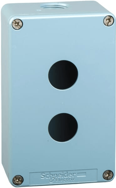 Le poste de commande métallique XAPD est protégé contre les chocs électriques. Il peut être monté à la fois verticalement et horizontalement grâce à 4 trous de fixation.