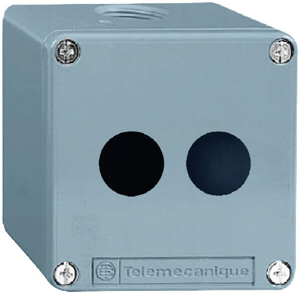 Le poste de commande métallique XAPD est protégé contre les chocs électriques. Il peut être monté à la fois verticalement et horizontalement grâce à 4 trous de fixation.