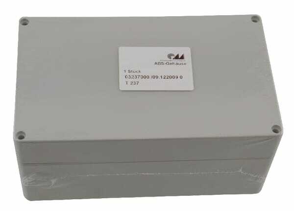 Boîtier industriel classique en ABS. Peut être fixé au mur à l'aide de canaux à vis dans la base ou de supports muraux.