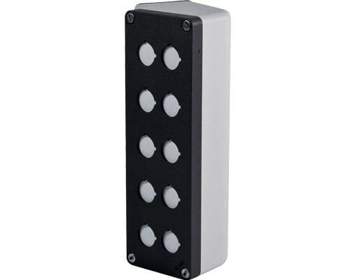 Nombre de positions de commande : 10 Type de construction de boîtier : Boîtier pour montage en surface Matériau du boîtier : Aluminium AlSi12 Ouvertures de diamètre : 22,5 mm Couleur du couvercle du boîtier : Gris Couleur : Gris Classe de protection IP : 66 Matériau d'étanchéité : Caoutchouc nitrile [NBR] Largeur : 85 mm Hauteur : 260 mm Profondeur : 95 mm Nombre de pièce dans l'emballage usine : 1 pcs Détails du produit : - Matériau, aluminium - Couleur gris RAL 7016 / gris RAL 7035 - Protection IP66