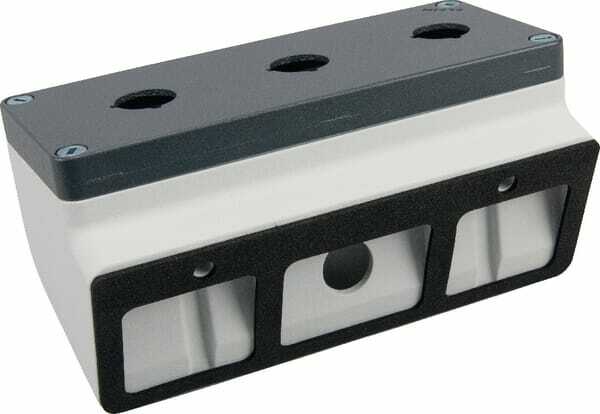 Nombre de positions de commande : 3 Type de construction de boîtier : Boîtier pour montage en surface Matériau du boîtier : Aluminium AlSi12 Ouvertures de diamètre : 22,5 mm Couleur du couvercle du boîtier : Gris Couleur : Gris Classe de protection IP : 66 Matériau d'étanchéité : Caoutchouc nitrile [NBR] Largeur : 85 mm Hauteur : 200 mm Profondeur : 95 mm Nombre de pièce dans l'emballage usine : 1 pcs Détails du produit : - Matériau, aluminium - Couleur gris RAL 7016 / gris RAL 7035 - Protection IP66