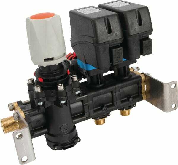 Débit maxi : 150 l/min Type : 2 sections Se compose de : - Soupape de décharge - 2 vannes proportionnelles à collecteur à pression constante, sans raccord femelle côté pression , vous les trouverez à la section « easylink » P222878 - Raccord pour manomètre et capteur de pression P max. (bar) : 40 bar Nombre de soupapes : 2 Composants : 8630011H (2x), 465514 Domaine d'application : - Pour les pulvérisateurs (40 bar) Caractéristiques : - Électrovannes avec dispositif à pression constante pour une pulvérisation constante - Bride en laiton