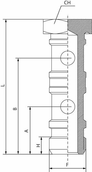 Distance du centre à l'extrémité du raccord : 17 mm