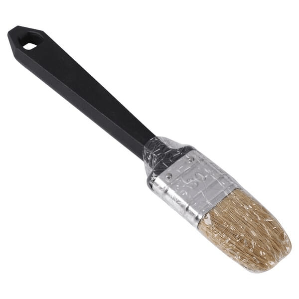 Pinceau plat en poils de porc chinois blancs, munie d'une virole en nickel sans bobine et d'un manche en plastique. Ce pinceau convient à tous les types de peinture et est idéal pour les apprêts.
