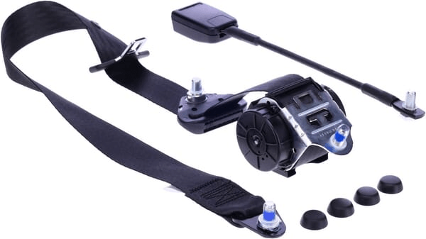 Extra info : Ceinture de sécurité à enrouleur 3 points Rétracteur de verrouillage ELR Small 90°/90° L=3.650 mm. Boucle flexible sur la ceinture L=350 mm. Boulons et écrous pré-assemblés Ceinture noire