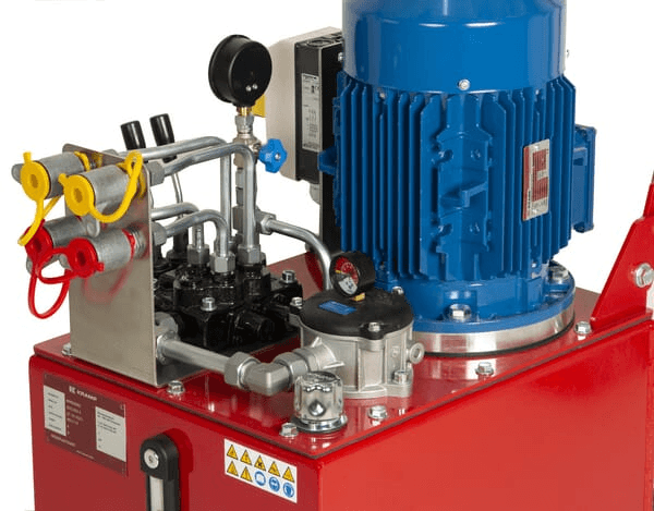 Conçu par Kramp , ces groupes hydrauliques d'atelier sont faciles et rapides à utiliser, ce qui les rend populaires dans les situations où l'efficacité et la flexibilité sont importantes. Ces unités hydrauliques mobiles peuvent être utilisées pour diverses tâches, telles que tester des cylindres, des moteurs, des vannes et faire fonctionner une presse d'atelier. Contenance du réservoir : 35 l Débit volumique nominal : 12 cm³/rev Débit volumique nominal : 12 l/min Puissance à sortie du moteur : 4 kW Pression de service continue max. : 180 bar Extra info : - Vanne de régulation manuelle double - Réservoir peint en couleur - Poignée de poussée pour une manœuvre facile - Boîtier de commande marche/arrêt, avec arrêt d'urgence - Câble de 5 mètres avec prise 32A 5P B000227 - Le moteur s'arrête en cas de coupure de tension - Pas de protection contre l'ordre des phases ou les manques de phase donc vérifier le sens de rotation au 1er démarrage Points forts : - Pas de bruit ni d'émissions d'échappement dues au moteur du tracteur en marche dans l'atelier - Mobile - Facile et rapide à déployer - Multi-usage Détails du produit : <character name=''lt''></character>nom du style=''gras''<character name=''gt''></character>- <character name=''lt''></character>/style<character name=''gt''></character>Groupe hydraulique sur roues pour utilisation en atelier - Cuve en acier résistant aux chocs avec indicateur de niveau (regard) - Montage de roue extra solide - Manomètre pour affichage de la pression de fonctionnement (avec obturateur) - Filtre de retour avec indicateur de colmatage (manomètre) - Grand bouchon de remplissage avec aération sur le réservoir pour un remplissage facile - Vannes manuelles double effet Comprend : - Moteur électrique - Pompe à engrenages - Manomètre - Vanne(s) double effet manuelle(s) - Raccords rapides (2x) - Cuve en acier robuste - Roulettes pivotantes (2x) et roulettes fixes (2x) - Filtre de retour - Filtre d'aspiration dans le réservoir - Bouchon de remplissage