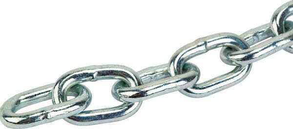 Chaîne à maillons courts soudés, utilisée pour différentes applications. Les chaînes fabriquées selon cette norme n’ont pas été testées pour leur résistance et ne doivent pas être utilisées comme élément porteur, pour des opérations de levage ou de soutènement ni pour la suspension fixe de charges.