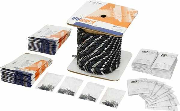 Se compose de : - Rouleau de chaîne de tronçonneuse emballé (raccords fournis)