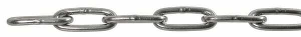 Chaîne à maillons longs soudés, utilisée pour différentes applications. Selon la norme DIN 15003, ces chaînes ne peuvent pas être utilisées en tant qu’élingue, pour le levage ou l’arrimage!