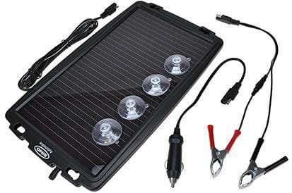 - Le kit de chargeur solaire d’entretien 12 V est conçu pour compenser la perte de puissance des batteries. Le chargeur possède une grande surface et charge même dans des conditions de faible luminosité. Grâce aux deux ventouses, il est facile de monter le chargeur d’entretien à l’intérieur ou à l’extérieur du pare-brise. L'ensemble est livré avec une prise allume-cigare et un jeu de pinces, qui peuvent être connectées directement aux pôles de la batterie. Il est donc idéal pour charger une batterie auxiliaire ou comme batterie de démarrage pour les bateaux, caravanes, voitures ou motos.