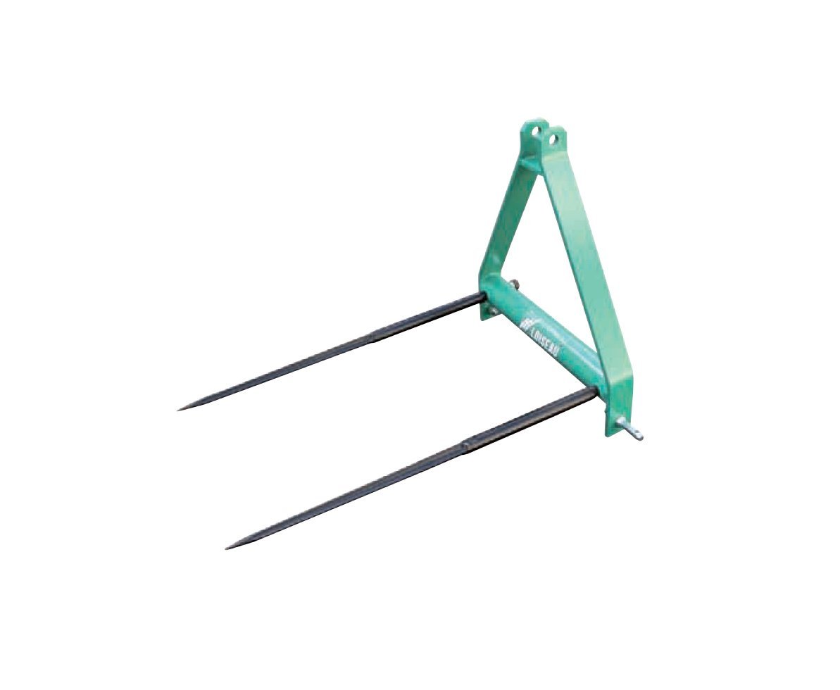 Pic Bottes arrière Loiseau, 2 dents, longueur des dents 1m, châssis peint, attelage peint, attelage 3 points.