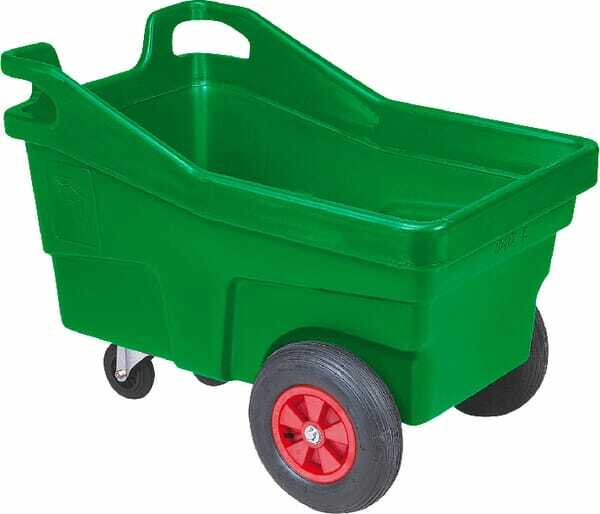 Informations techniques : - la cuve en polyéthylène haute densité possède un rebord à double paroi qui lui confère solidité et rigidité - ses formes épurées facilitent le nettoyage et l'entretien - slalom entre les portes et passage de marche (4 cm) sont possibles - facile et agréable à manœuvrer grâce à ses poignées intégrées - le chariot 340 litres passe dans des portes de largeur 800 mm - tournent facilement sur eux-mêmes - roue de Ø 400 mm gonflable, assurant le confort pendant les trajets - très stable grâce aux 2 roulettes pivotantes - matériel particulièrement adapté aux productions hors-sol et aux écuries
