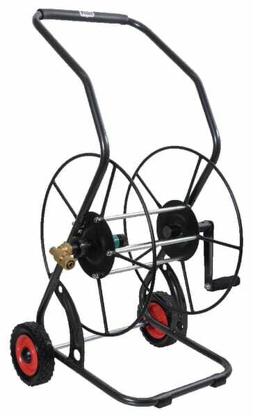 Caractéristiques : - Cadre et enrouleur avec revêtement par poudrage - 1 conduite de passage 1/2'' - Capacité du flexible : 1/2'' - 80 m, 5/8''- 45 m, 3/4'' - 40 m, 1'' - 25 m - Avec liaison : 1/2'' Informations techniques : ·Une poignée à hauteur ergonomique, entourée d’élastomère ·Finition: revêtement poudre ·Des raccords en laiton ·2 pneus en caoutchouc ·Capacité1/2''=80M ·Capacié 5/8''=60M ·Capacité 3/4''=40M ·Capacité 1''=25M