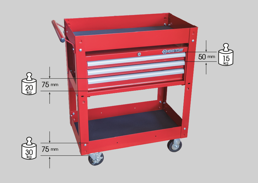 Chariot de 2 étagères + 3 tiroir