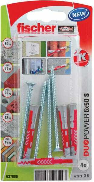 Le Fischer Duopower est une cheville intelligente à 2 composants, et grâce à sa plus grande profondeur d'ancrage, il est particulièrement adapté au montage dans les matériaux de construction perforés, le béton cellulaire et pour ponter les couches de plâtre.