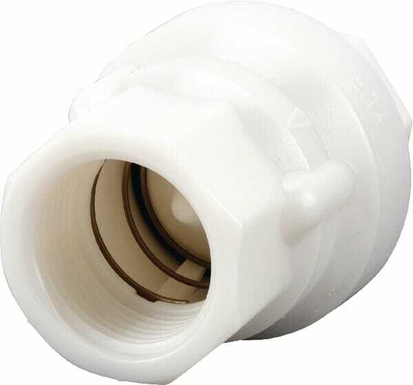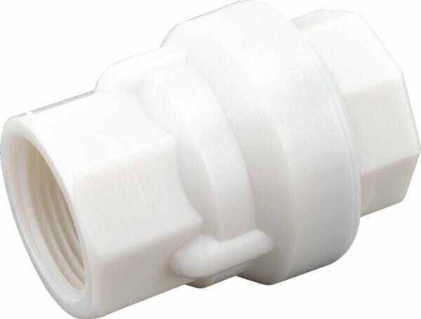 Médium prévu : n/a Type : n/a Pression de service max. : 10 bar Matériau : Plastique Traitement de surface : n/a Nombre de raccords : 2 Type de filetage du raccord : Inch Diamètre de filetage du raccord : 1 Inch Longueur de filetage du raccord : 18 mm Longueur totale : 75 mm Largeur totale : 57 mm Taille de clé : 41.0 mm Nombre de pièce dans l'emballage usine : 20 pcs Caractéristiques : - Température max.: 85°C Informations techniques : - Matériau de corps: PA - Matériau de joint: EPDM - Matériau de clapet: PA - Matériau de ressort: acier inoxydable 316