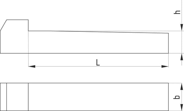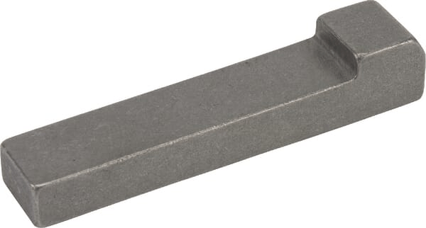 Clavette à talon avec un cône de 1:100, DIN 6887. La longueur de la clavette n'inclut pas la tête, la hauteur est mesurée juste après la tête. La largeur est également la largeur de fente recommandée.