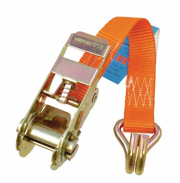Détails du produit : - Conformément à la norme EN 12195-2 - Ne jamais utiliser les sangles d'arrimage pour le levage - Attachez les sangles d'arrimage de manière à ce que la sangle ne soit pas tordue. - Ne jamais mettre de charge sur la pointe des crochets - Le cliquet ne doit pas être tendu sur un coin de la charge - Utilisez toujours un équipement de protection avec les charges comportant des bords tranchants et/ou des surfaces rugueuses - Ne jamais utiliser de sangles d'arrimage en polyester dans un environnement alcalin