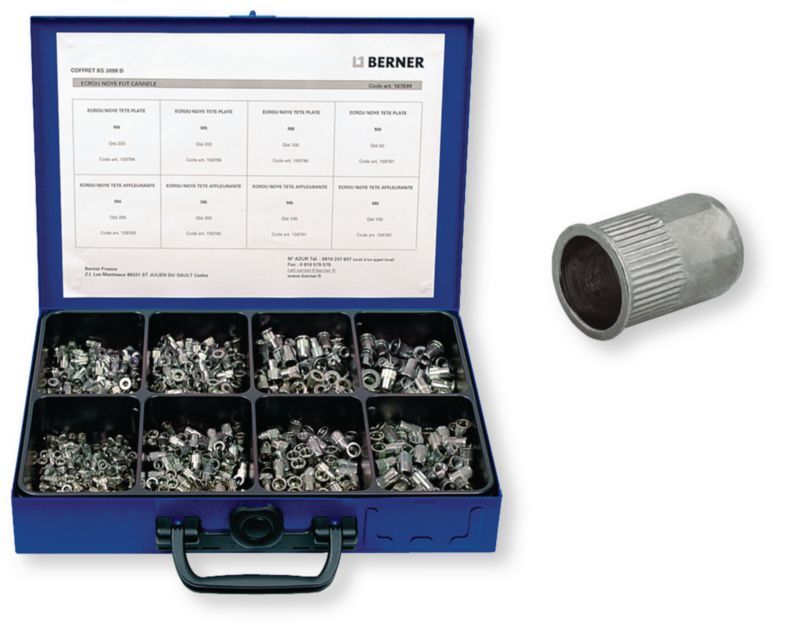 Coffret BS 3098 D écrous noyés TP-TA zingués blanc - 1150 pcs (par 1)