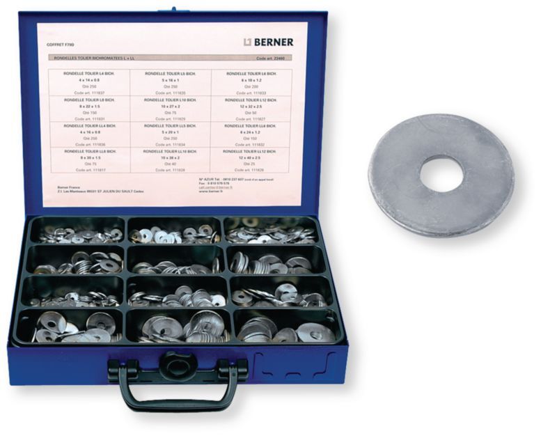 Produit réservé aux professionnels Coffret F 79 D rondelles tôlier zinguées blanc - 1765 pcs (par 1)