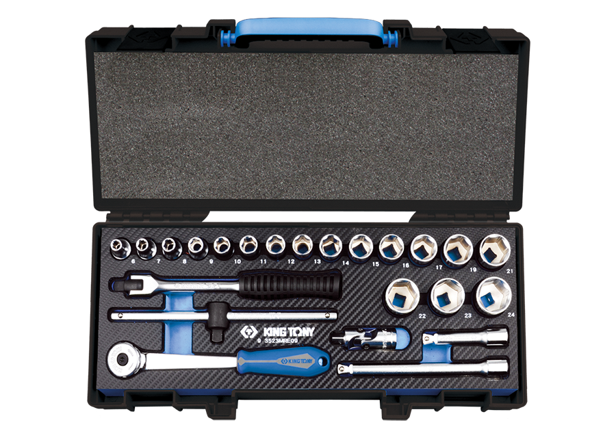 Coffret de douilles et accessoires 3/8" 6 pans EVAWAVE - 23 pièces