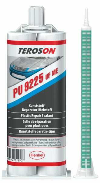 Adhésif de réparation bi-composant à temps de pose ultra-court, à base de polyuréthane, pour les réparations sur plastiques tels que points de fixation et supports cassés ou manquants. Il peut être facilement appliqué avec un pistolet manuel correspondant et un mélangeur statique approprié. Il possède une excellente aptitude au ponçage et peut être repeint avec tous les systèmes de peinture automobile. Ce produit n'a pas de listing H351 grâce à Micro Emission. Ces adhésifs Micro Emission (ME) ont des concentrations de diisocyanates inférieures à 0,1 % en poids et sont classés comme non dangereux. Les diisocyanates sont utilisés comme matières premières pour les produits en polyuréthane tels que les adhésifs, les laques, les mousses (isolantes) et les produits d'étanchéité et peuvent avoir des effets néfastes sur la santé. Ce produit est donc exempté de l'obligation d'étiquetage et de formation.