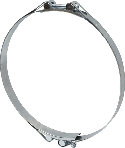 Collier de serrage très robuste en 2 parties avec double bande pour une force de serrage très élevée, entièrement en acier zingué. La plage de serrage est indiquée sur la bande de serrage au moyen d'un texte imprimé.
