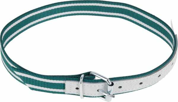 Informations techniques : - renforcées cuir - coloris vert à rayures blanches - avec fermoir boucle - zinguées - épaisseur du maillon 5 mm