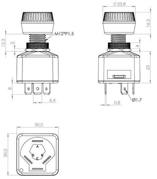 Commutateur rotatif, on-on-on, 12-24V, cosses plates, 6.3mm