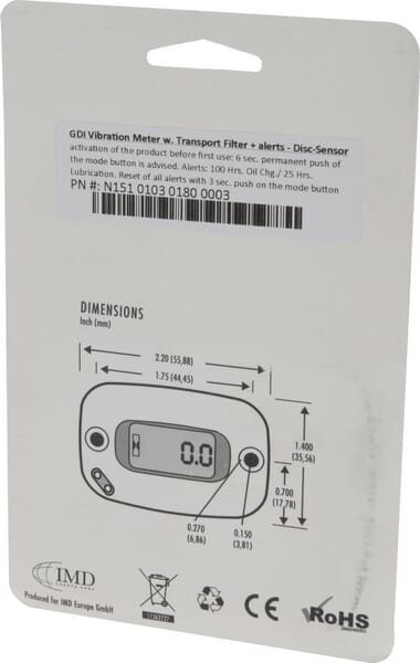 Ce compteur d’heure de fonctionnement mesure le nombre d'heures de fonctionnement et les intervalles d'entretien sur toutes les machines qui vibrent pendant leur utilisation.