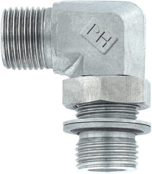 Détails du produit : - Coude 90° réglable - Côté vissé : BSP avec filetage droit - Joint côté vissé : bague support avec joint torique FPM - Filetage mâle BSP avec cône 60° - Réglable au moyen d'un écrou de blocage - Norme : ISO 1179 - Acier inoxydable : AISI 316 ti - Plage de température : -20°C à +200°C - Lors du montage de pièces en acier inoxydable, graisser les filetages avec de la graisse céramique, téflon ou graphite