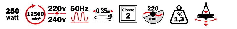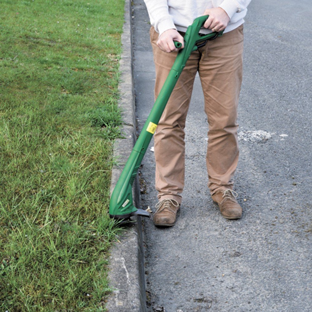 Coupe-bordures électrique double fil. 230-240 V ~ 50 Hz. Puissance 250 W. Protection Classe II. Ø de coupe 220 mm. Corps en 3 parties avec carter de protection. Avance semi-automatique du fil. Poids ± 2 kg. Livré avec 1 bobine double fil nylon Ø 1,2 mm x 2x3 m. Bobine de rechange, référence : PRWF254A