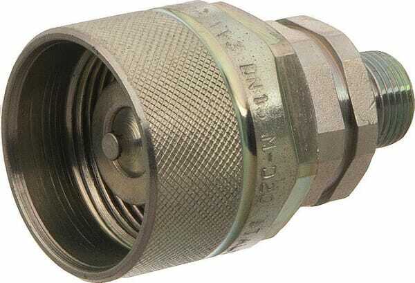 Couplé sous pression : Yes Matériau des joints : NBR / PTFE Débit max. : 80 l/min D1 : 22 mm Norme ISO : 14541 Convient pour le numéro d'origine : HS102AGF06 Traîtement de surface : Passivé blanc Longueur : 68 mm Raccordement : 3/8'' BSP Taille BG : 1/2 Longueur du fil : 12 mm Pression nominale : 400 bar D : M36x2 mm Clé : 36 mm Temp min. : -30 °C Temp max. : +100 °C Particularités : - Filetage de liaison autobloquant Domaine d'application : - Machines de construction. - Liquides à base d'huiles minérales Caractéristiques : - Robuste. - Faible perte de pression - Blocage bilatéral Informations techniques : - L'accouplement doit être serré jusqu'en butée - Accouplement possible uniquement à une pression allant jusqu'à 50 bars Avantages : - Haute pression de service - Pas de desserrage intempestif suite à des vibrations