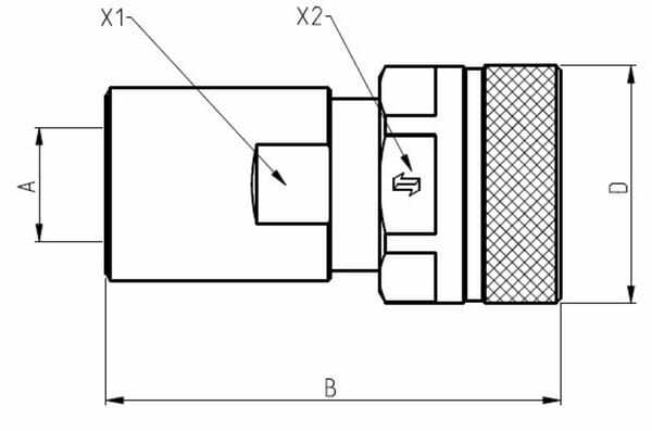 Informations techniques : - Matériau du manchon : acier blanc passivé au Cr III, valve durcie - Matériau de la fiche : acier au carbone durci, Cr III, valve durcie - Étanchéité : NBR avec bague de support en PTFE - Température de service : -25 °C à +160 °C - Facteur de sécurité dynamique : 1:3 - Facteur de sécurité statique : 1:2 - Raccordement : fiche et manchon à coupler uniquement sous pression résiduelle, découplage sous pression autorisé